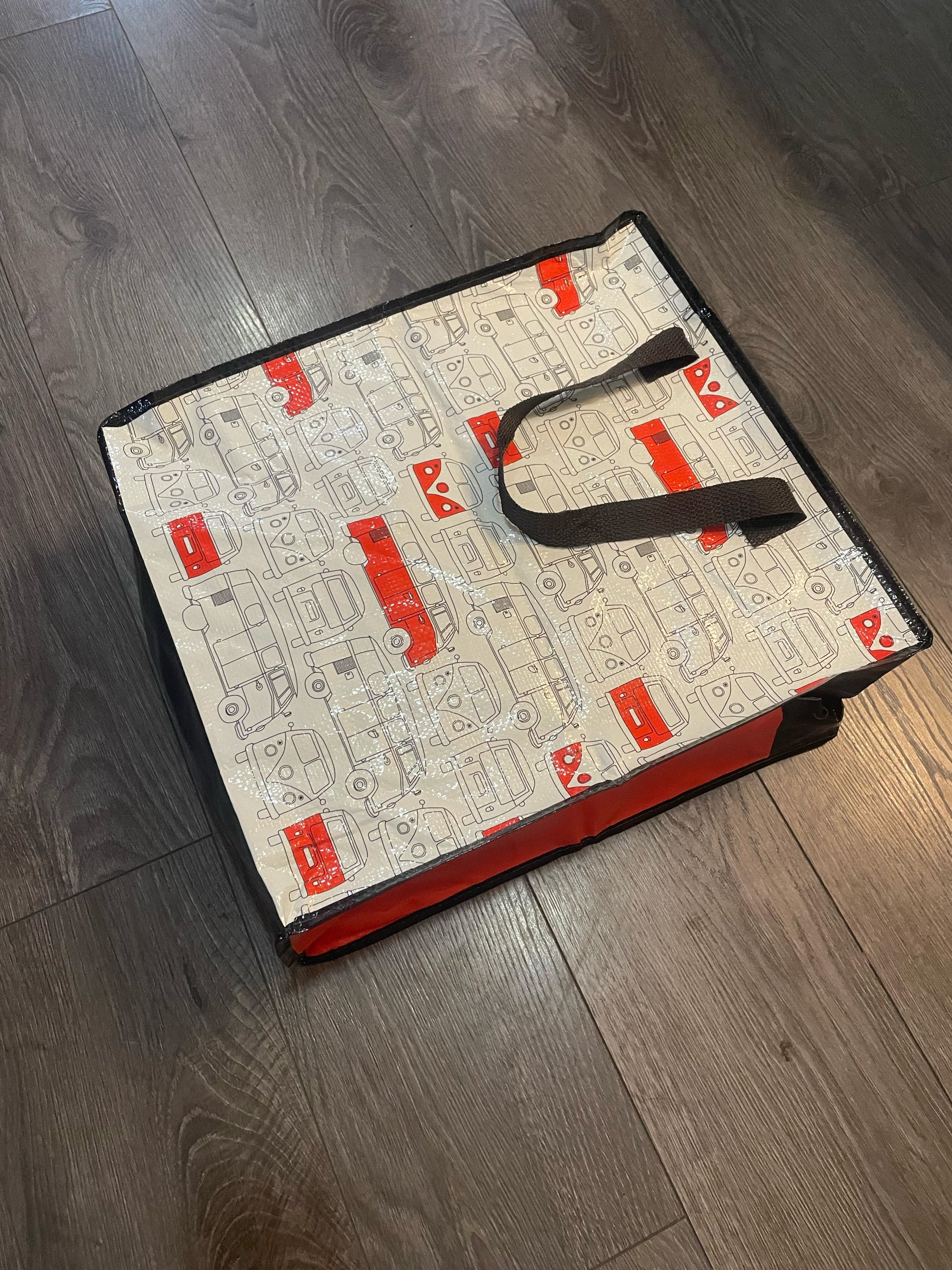 This cool little bag measures in at 16.5 x 14 x 6 inches